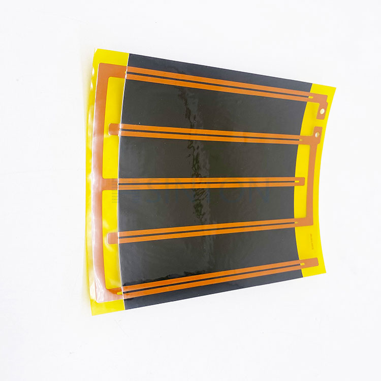 فيلم التسخين الكهربائي بوليميد هو فيلم مرن مصنوع من مادة بوليميد، وهي مرنة للغاية ويمكن أن تتكيف بسهولة مع الأشكال المختلفة والأسطح المنحنية. تسمح هذه المرونة باستخدامها في التطبيقات التي تتطلب توافقًا محكمًا أو أسطحًا منحنية لا يمكن تحقيقها باستخدام عناصر التسخين الصلبة التقليدية. وفيلم التسخين الكهربائي بوليميد رقيق للغاية وخفيف الوزن، مما لا يزيد من وزن أو حجم الجهاز. على الرغم من أن طبقة التسخين الكهربائي من البوليميد رقيقة جدًا، إلا أن موصليتها الحرارية الجيدة تضمن تأثير تسخين موحد وفعال. وهذا يسمح لهم بتوليد حرارة كافية على مساحة سطحية أصغر، مما يحسن كفاءة الطاقة. يتميز فيلم التسخين الكهربائي من البوليميد أيضًا بمقاومة كيميائية ممتازة، ومقاومة درجات الحرارة العالية ومقاومة التآكل، ويمكن أن يعمل بثبات لفترة طويلة في البيئات القاسية. وهذا يجعلها مناسبة بشكل خاص للتطبيقات التي تتطلب درجة عالية من الاستقرار والموثوقية على المدى الطويل، مثل المعدات الفضائية والطبية.